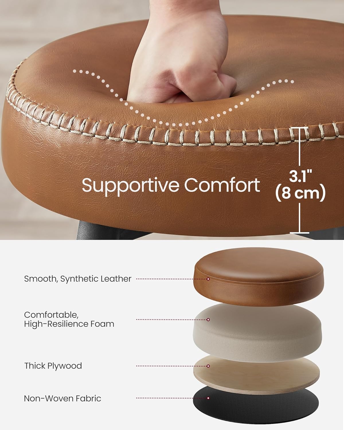 Barstole i industrielt design med lædersæde og 4 metalben - designet til din komfort med støttende højelastiske skum overtrukket af karamel brun kunstlæder. Disse høje stole til barer med lædersæde i kunstlæder og sorte metalben tilbyder dig en stor komfort, som du kan bruge til afslappende stunder i køkken og bar.