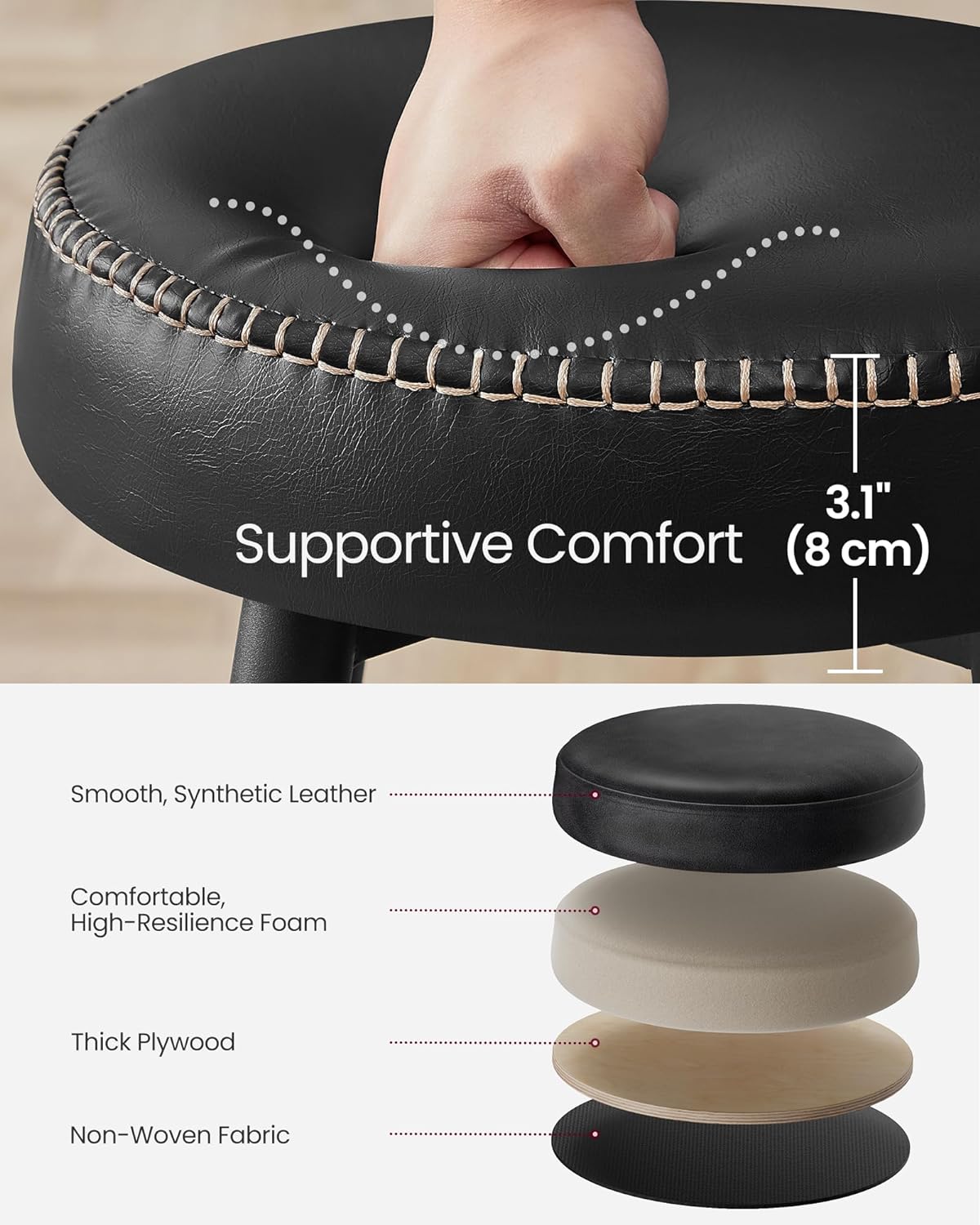 Barstole i industriel design med lædersæde - sæt med 2 stk køkkenskamler i sort kunstlæder og metal - høje stole til barer 51,6 x 51,6 x 76,2 cm