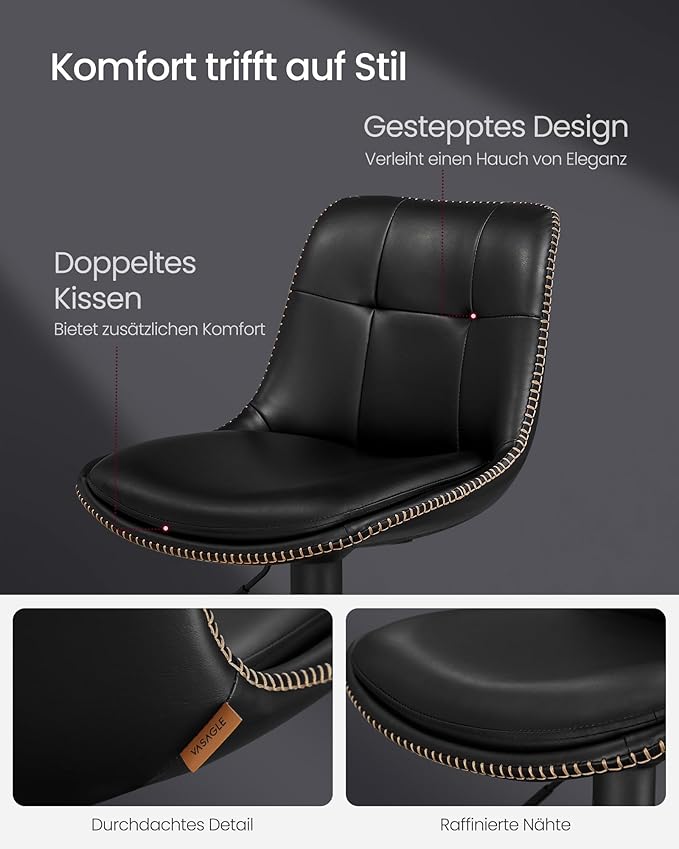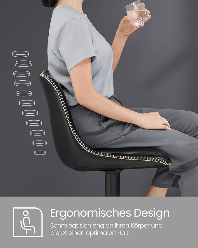 Med disse høje stole kan du skabe et hyggehjørne hvor du kan sidde og spise din morgenmad hver morgen. Med den højdejusterbare og 360° drejbare barstol med fodstøtte, sæde af polstreret kunstlæder i sort, ryglæn og stabil metal trompetfod er komforten helt i top.