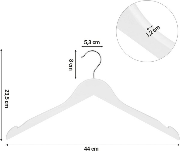 - Størrelse på bøjlerne: 44 x 1,2 x 23,5 cm (B x D x H)