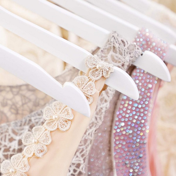 Tøjbøjler i ahorntræ uden buksestang - 20 stk hvide bøjler - 44 cm træbøjler til tøj
