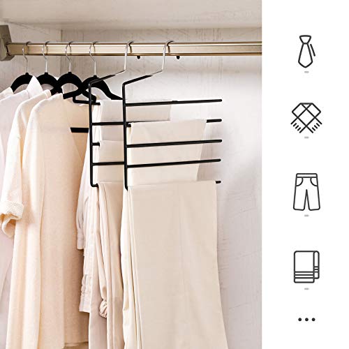Smarte buksebøjler hvor der kan være 5 bukser på samme bøjle, idet der er 5 metalbøjler hvor bukserne kan hænge. Buksebøjlen hjælper dig med at skabe overblik i dit garderobeskab.