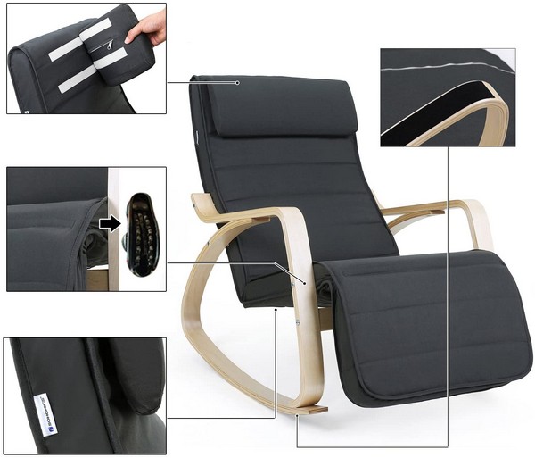 På grund af det smukke udseende og det enkle farvevalg passer gyngestolen perfekt til andre moderne møbler i boligen.