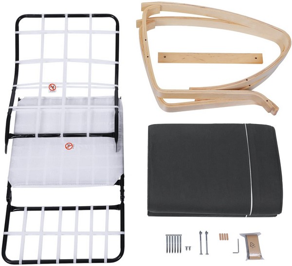 Gyngestolen med justerbar fodstøtte er lavet af robust birketræ af høj kvalitet og har mørkegråt stof i bomuld. Det massive stel er lavet af lakeret birketræ, hvilket sikrer den bedst mulige stabilitet.