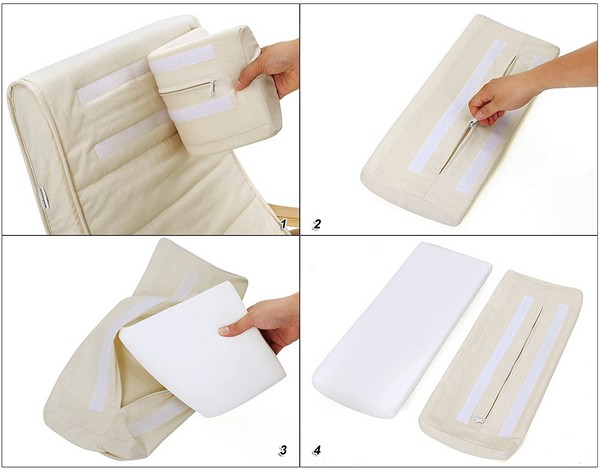 Stof i beige bomuld som føles behageligt og godt mod huden og har god luftgennemtrængelighed. Stoffet kan nemt tages af med lynlås på bagsiden, det er også vaskbart og garanterer god komfort.
