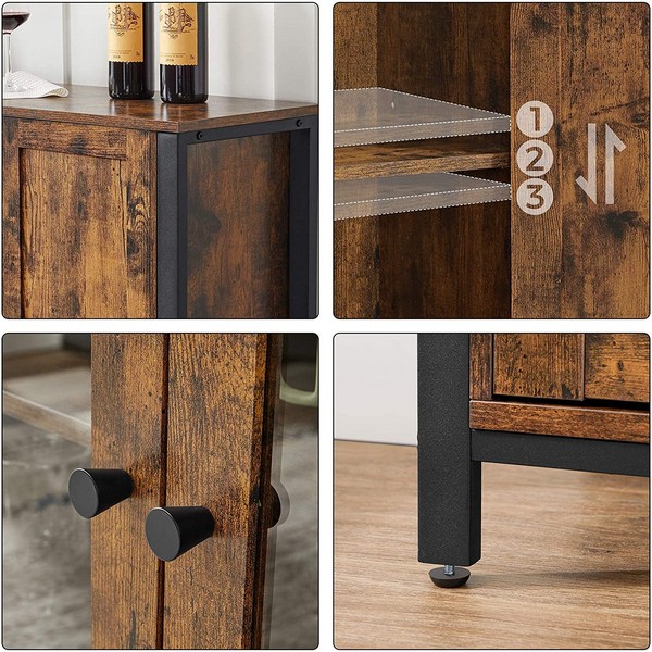 Ud over sit flotte rustik brune look har denne skænk i industrielt design også gode praktiske funktioner. Opbevaringsskabet har topplade, hylde til opbevaring og 3 skabe med højdejusterbare hylder.