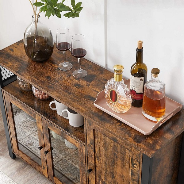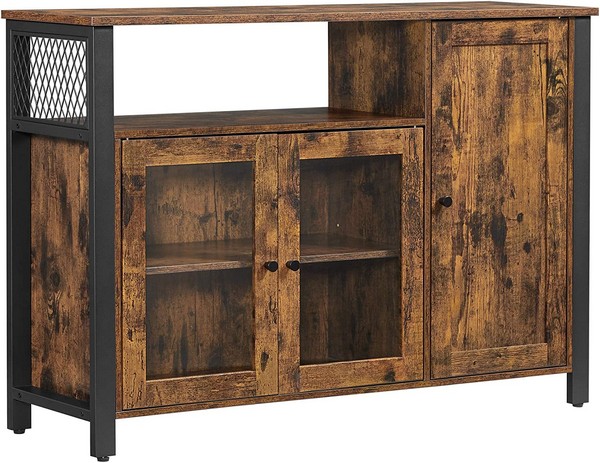 Skænk med skabe og hylder - opbevaringsskab i industrielt design - rustik brun skab 110 x 33 x 75