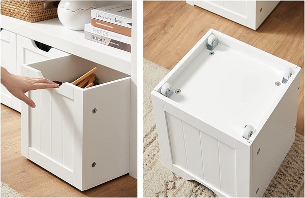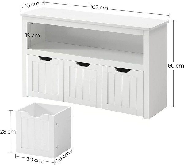 Lille kommode med hylder og kasse til opbevaring - hvid 102x30x60