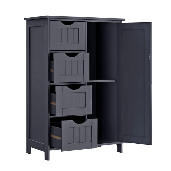 Badeværelsesskab med 4 skuffer og skab med hylde, der passer ind i ethvert rum.