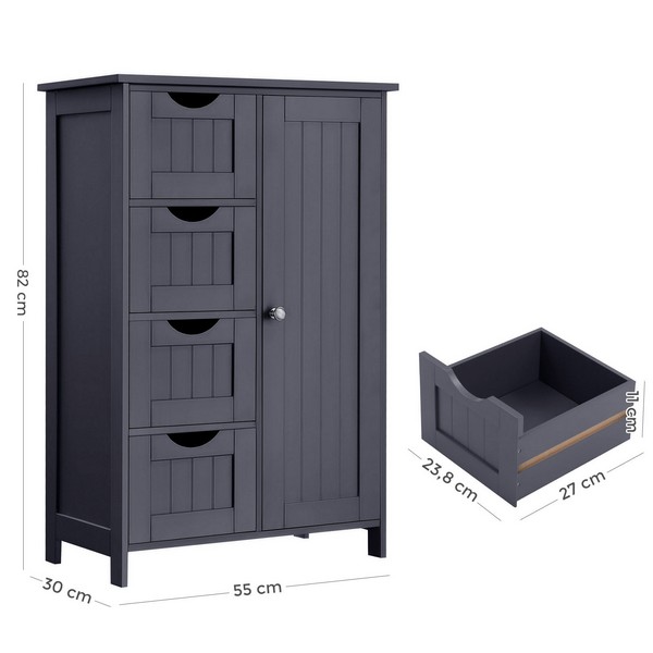 Kommode med skab og 4 skuffer - grå 81 x 55 x 30 cm