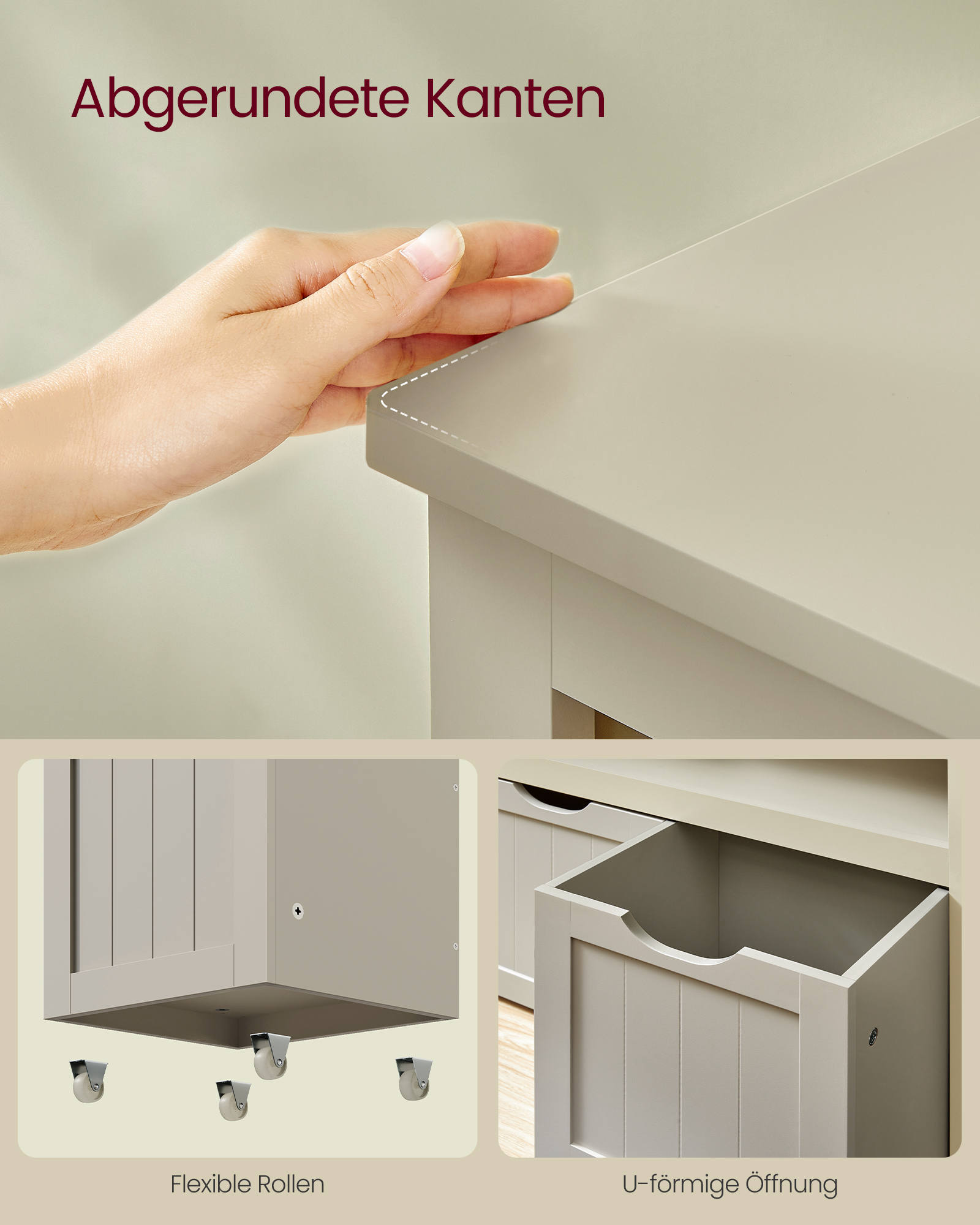 Reol til opbevaring på børneværelset - lille kommode med hylder og kasse med hjul - beige: