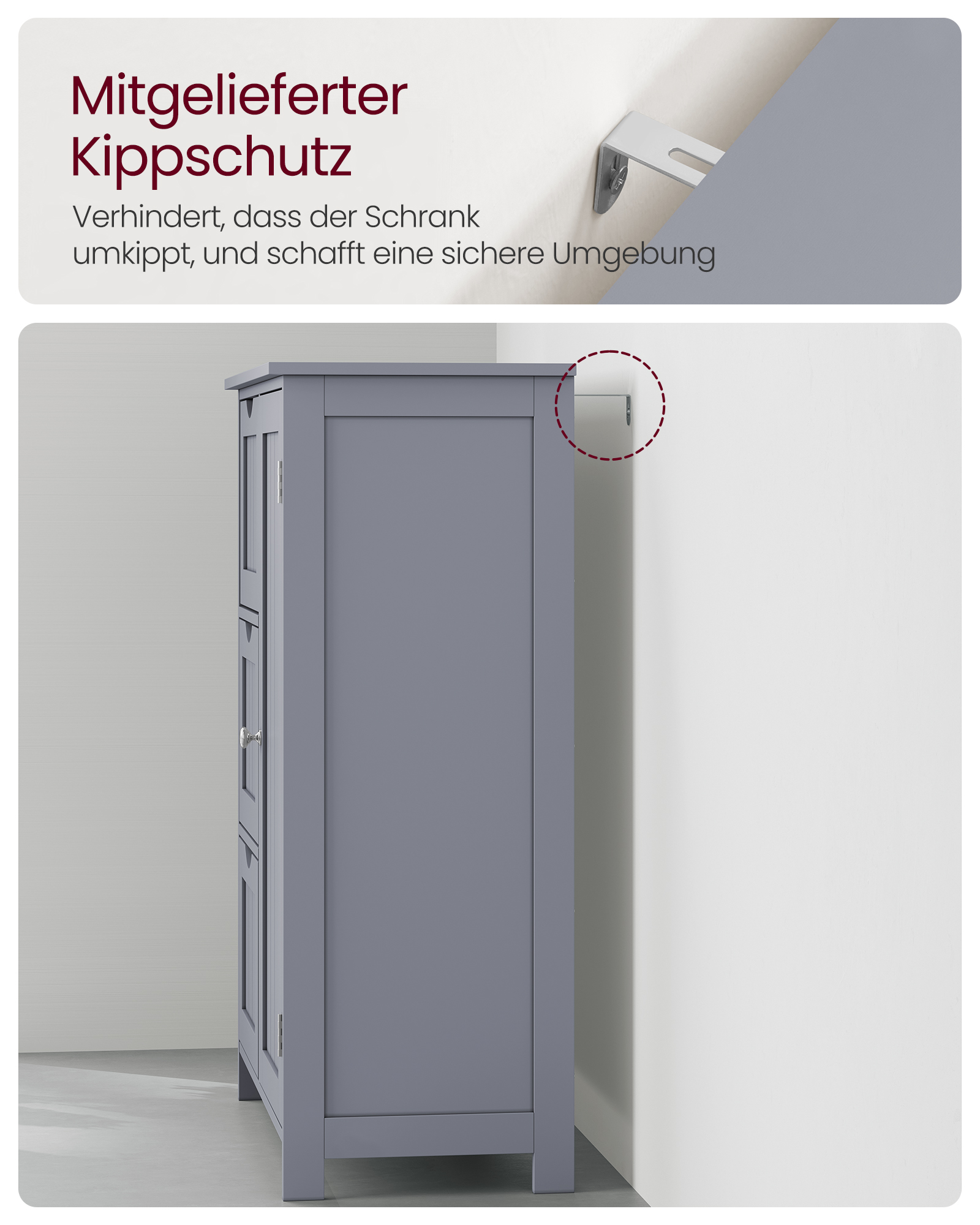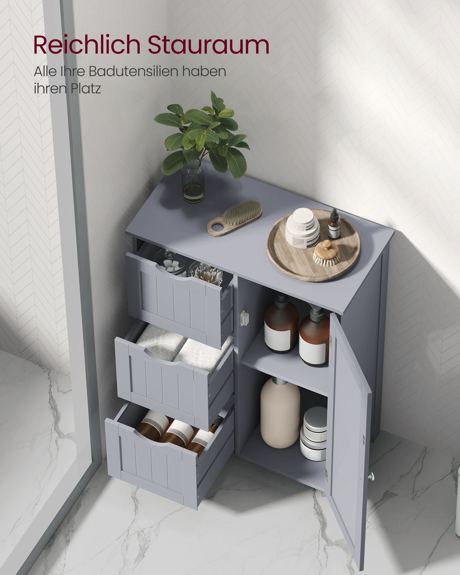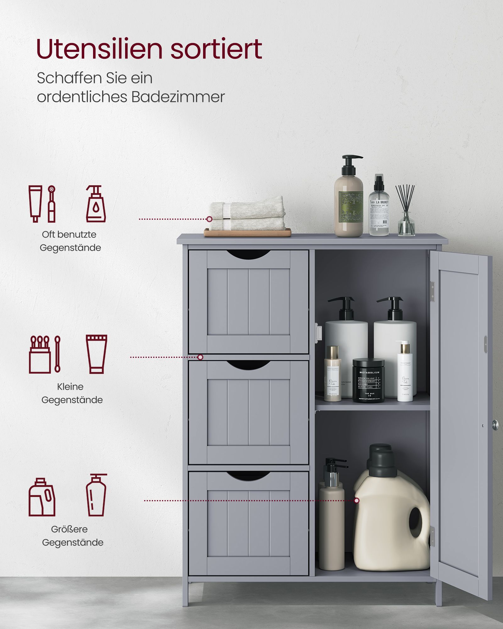 Kommode med skab, hylde og 3 skuffer - badeværelsesskab - grå 60 x 30 x 80 cm
