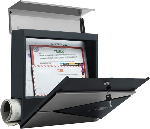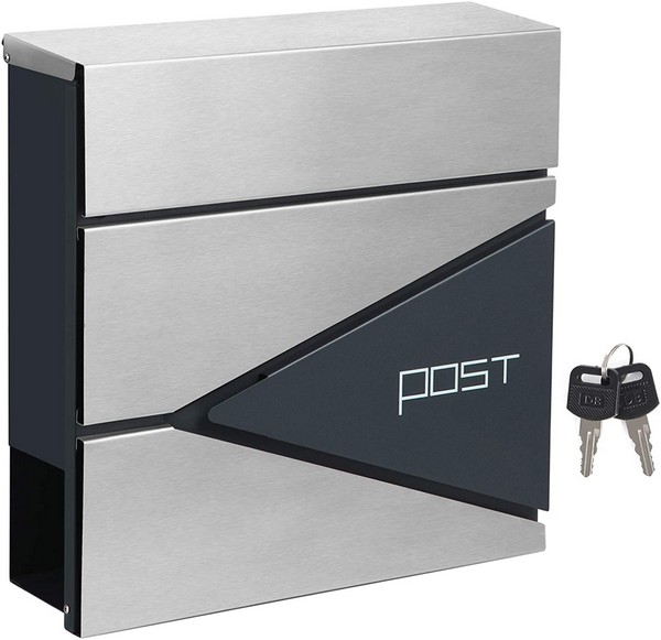 Væghængt brevkasse med lås og avisholder - vægmonteret postkasse med avisrør - antracit og sølv farvet