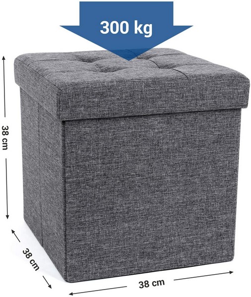 Puf med kiste - foldbar skammel eller bænk/siddebænk 38 x 38 x 38 - opbevaringskiste i mørkegrå stof med opbevaringsplads
