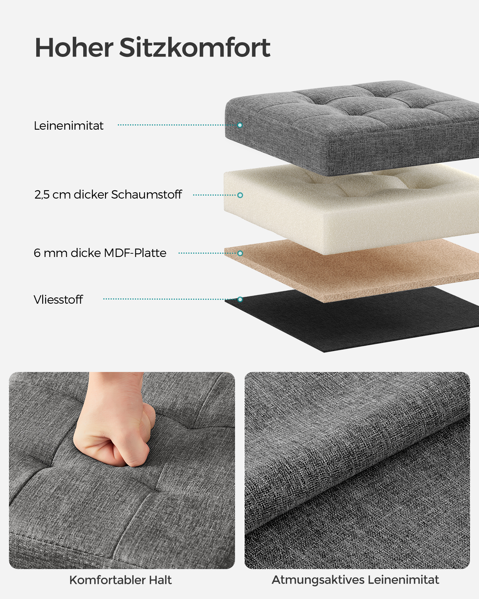 Selvom du normalt ikke vil sidde på opbevaringskisten så længe, som du vil på din sofa, vil vi sørge for, at du er komfortabel hvert minut - det er derfor, der er god polstring.
