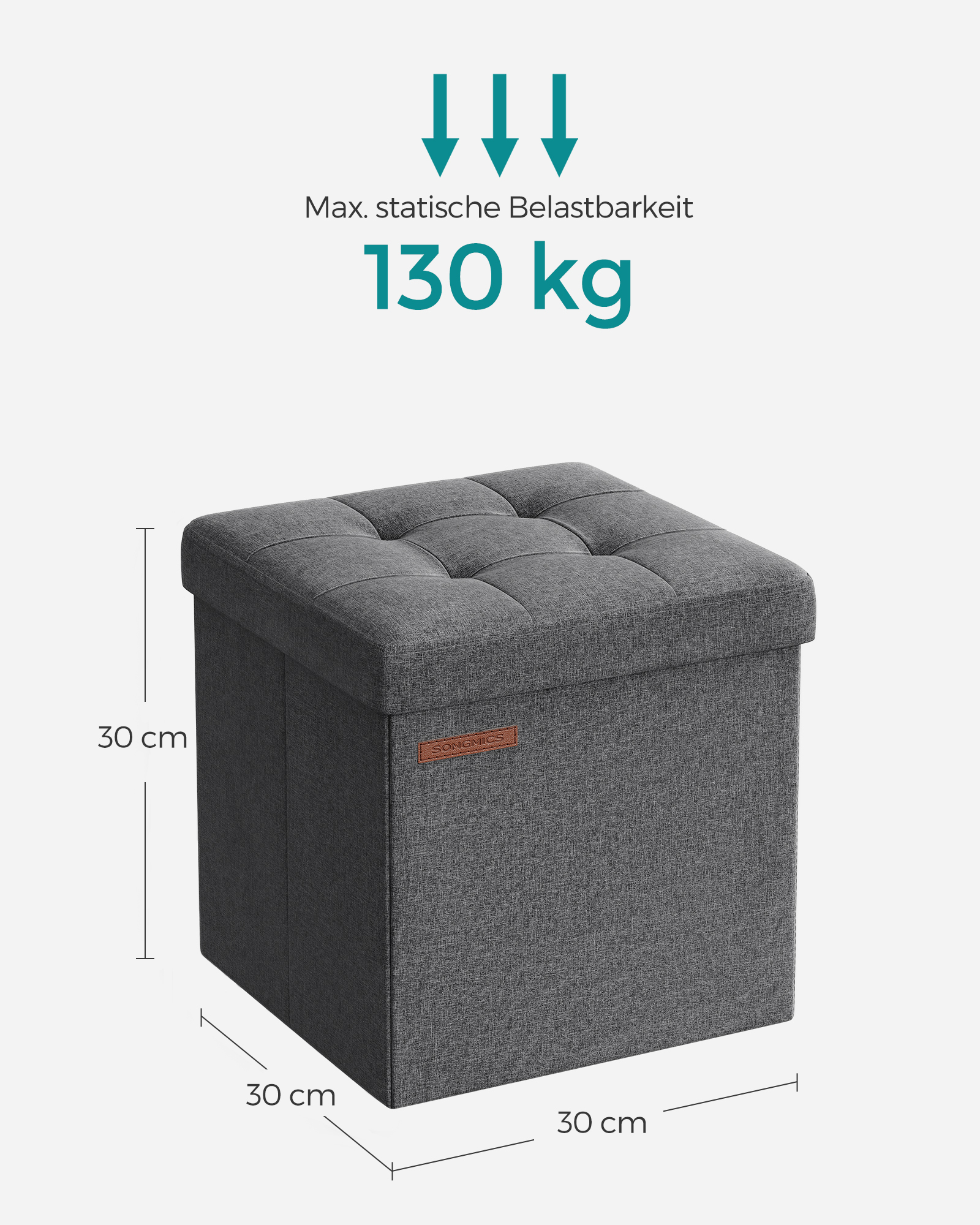 Puf med kiste - foldbar skammel eller bænk/siddebænk 30 x 30 x 30 - opbevaringskiste i mørkegrå stof med opbevaringsplads