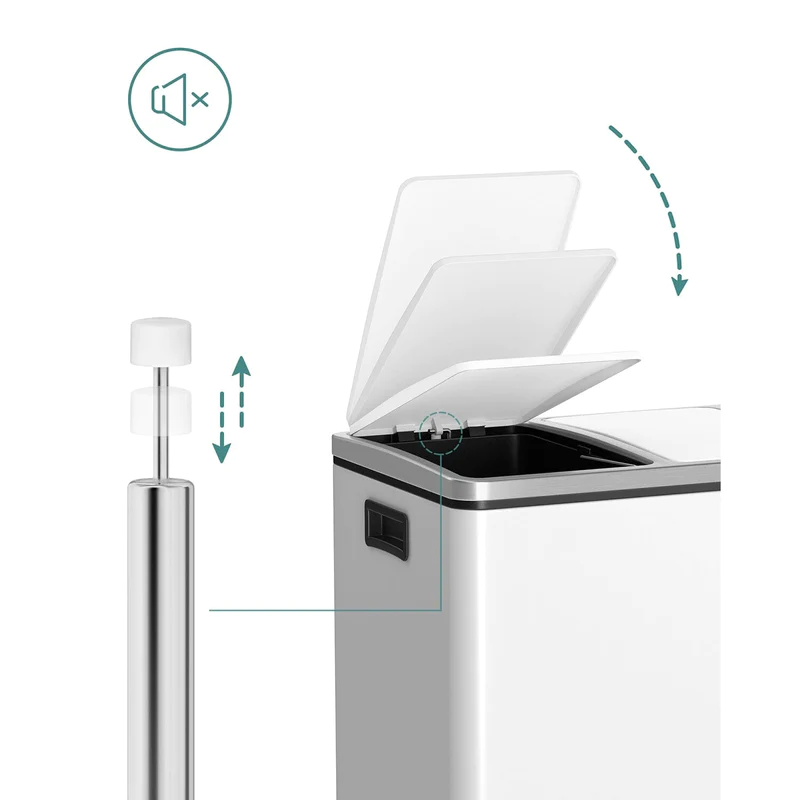 Din skraldespand med 3 rum til affaldssortering behøver ikke at ligne affald. Med en elegant hvide farve og enkel design vil denne 54L pedalspand fremstå stilfuld i dit køkken.