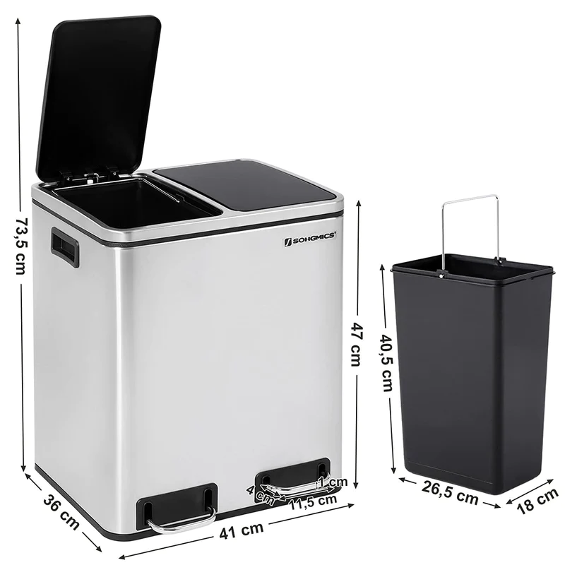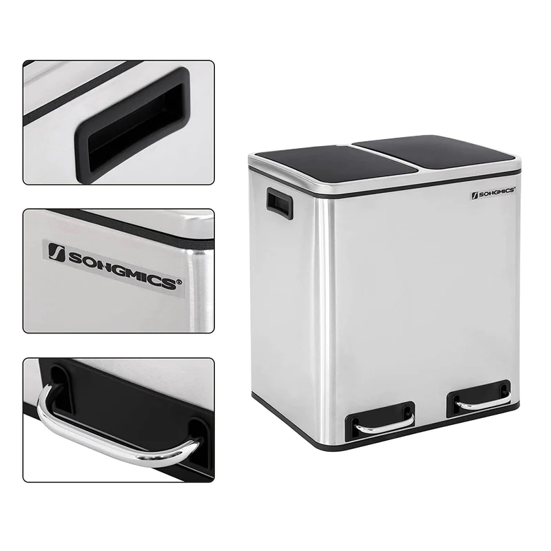 Denne skraldespand inkluderer affaldssortering med 2 aftagelige plastik spande på hver 15L for nem rengøring, hvis din affaldspose ved et uheld går i stykker og spilder.