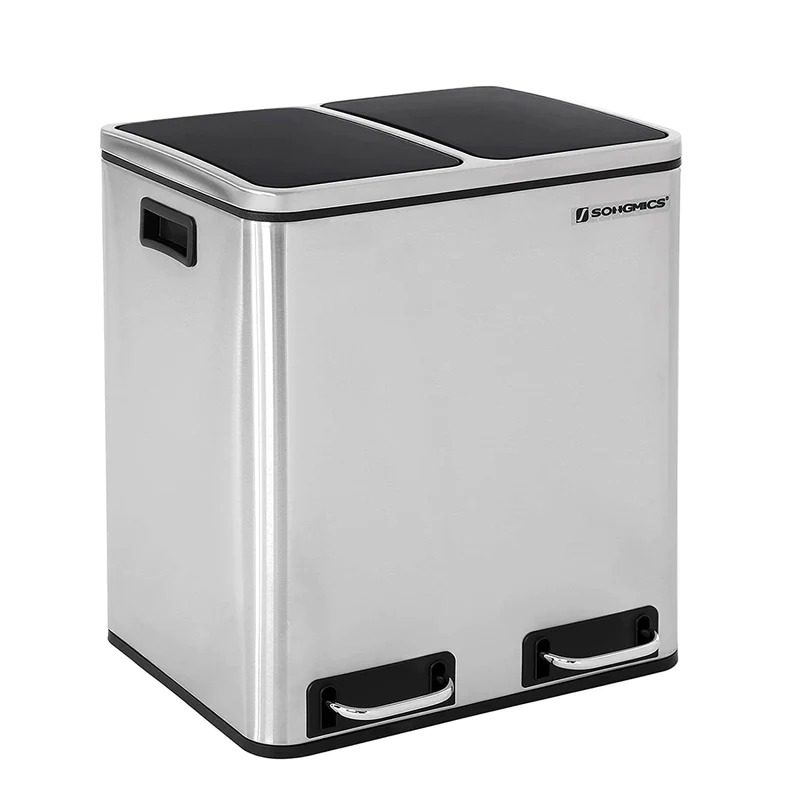 Din skraldespand med 2 rum til affaldssortering behøver ikke at ligne affald. Med en elegant sølv farve og enkel design vil denne 30L pedalspand fremstå stilfuld i dit køkken.