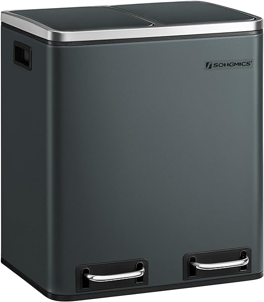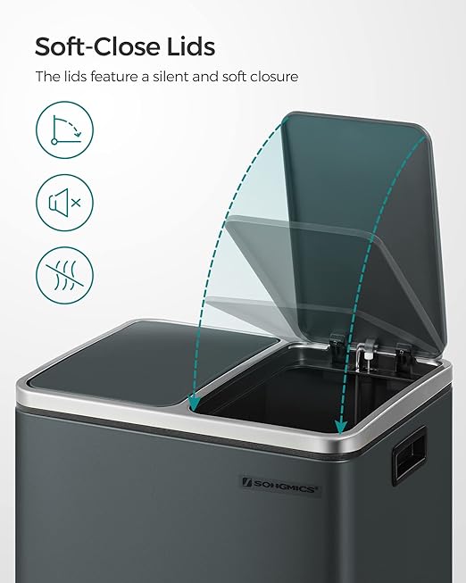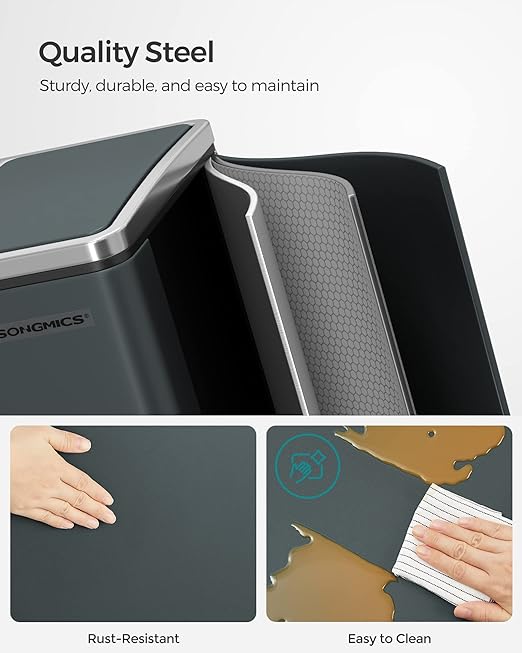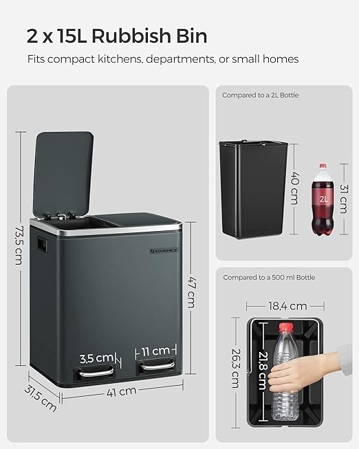 Din skraldespand med 2 rum til affaldssortering behøver ikke at ligne affald. Med en elegant antracit grå farve og enkel design vil denne 30L pedalspand fremstå stilfuld i dit køkken.