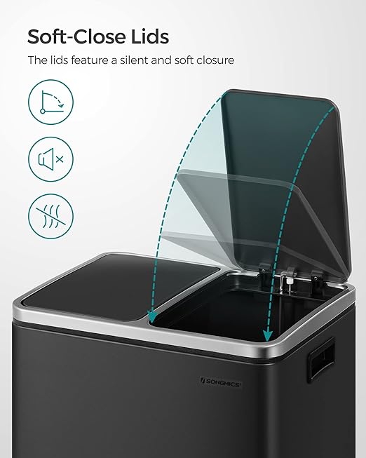 Din skraldespand med 2 rum til affaldssortering behøver ikke at ligne affald. Med en elegant sort farve og enkel design vil denne 30L pedalspand fremstå stilfuld i dit køkken.