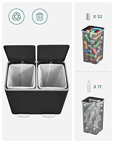 Sort pedalspand på 48 liter med 2 indvendige plastspande på 24L til affaldshåndtering, hængslet låg og blød lukkemekanisme for nem affaldshåndtering.