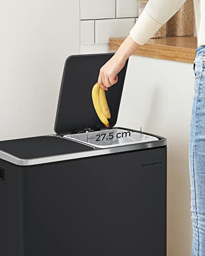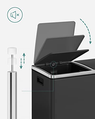 Skraldespand med 2 rum til affaldssortering på 48 liter (2 x 24L) - pedalspand til affaldshåndtering i metal med soft close låg - 48L sort affaldsspand
