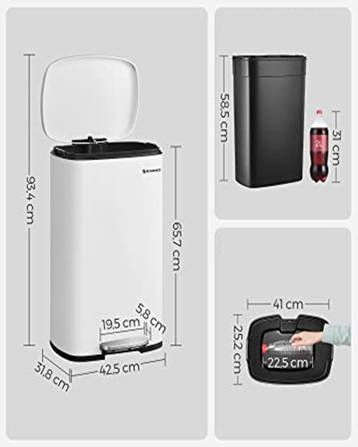 Din skraldespand behøver ikke at ligne affald. Med en elegant hvid farve og enkel design vil denne 50L pedalspand fremstå stilfuld i dit køkken.