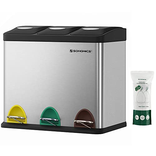 Sølv skraldespand med farvede pedaler på 24 liter med 3 indvendige aftagelige plastspande på 8L til affaldshåndtering, hængslet låg og blød lukkemekanisme for nem affaldshåndtering.
