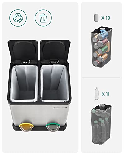 Denne skraldespand inkluderer affaldssortering med 2 aftagelige plastik spande på hver 15L for nem rengøring, hvis din affaldspose ved et uheld skulle gå i stykker og spilde.