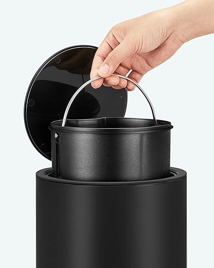 Den indvendige runde og aftagelige sorte plastspand på 3 liter, er udstyret med et håndtag, så du nemt kan fjerne den fra affaldsspanden for at bortskaffe affaldet.