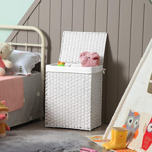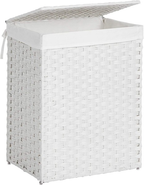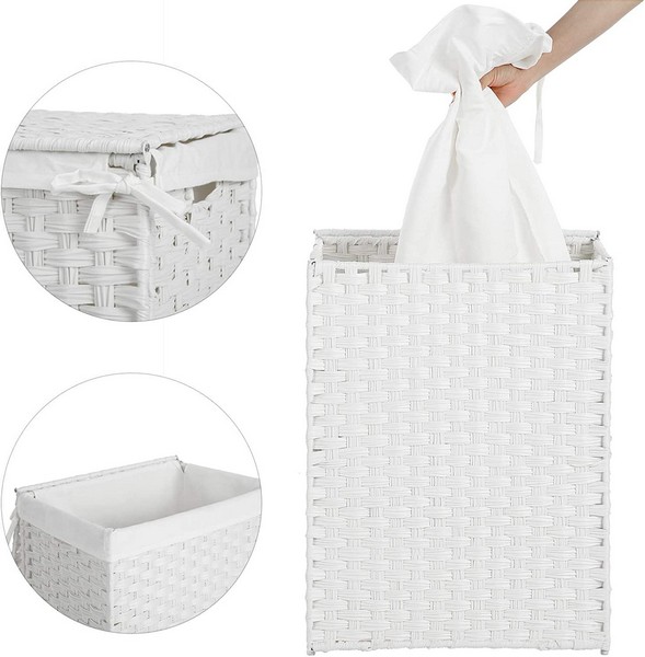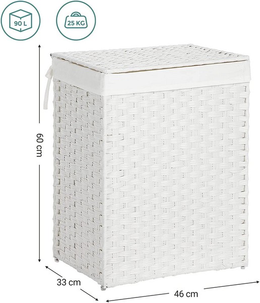 Praktisk, dekorativ og moderne hvid håndhævet vasketøjskurv med 90 liters vasketøjspose, der hjælper med opbevaring af snavset tøj.