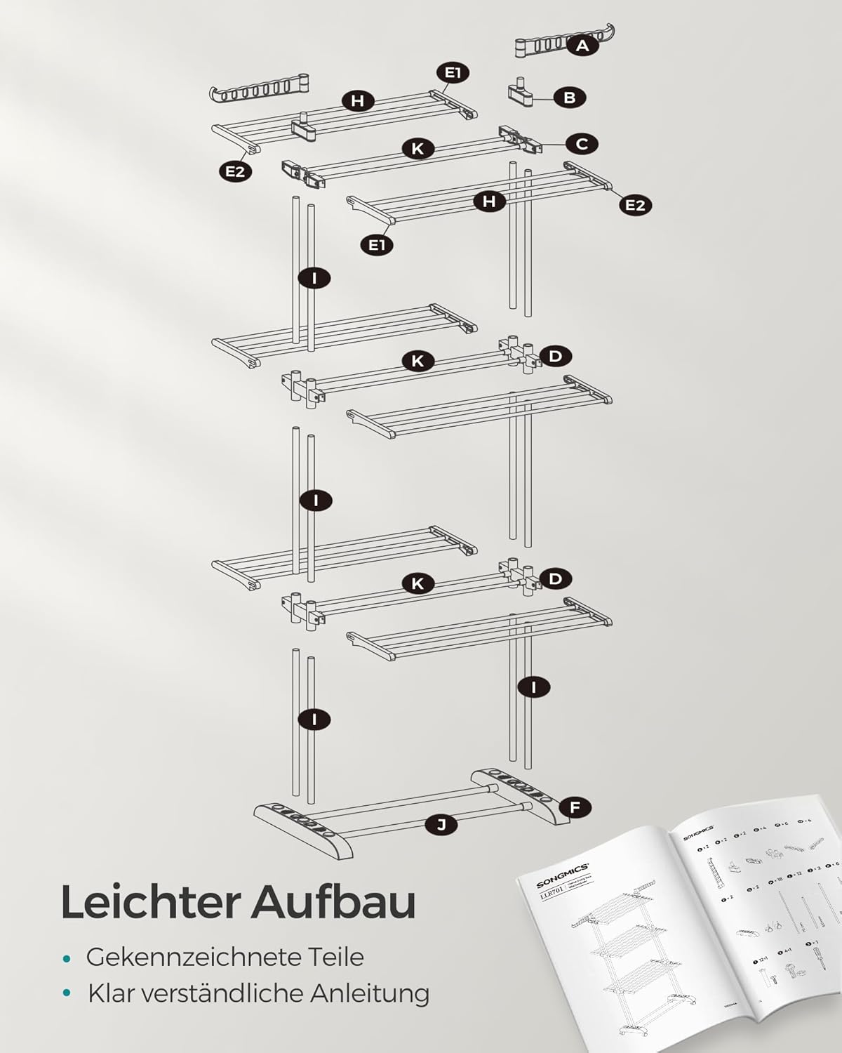 Nem at samle: Takket være den enkle konstruktion, markerede dele og detaljerede instruktioner, kan tørrestativet nemt og hurtigt samles og sættes op.