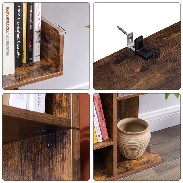 Bogreolen kan anvendes i stuen, børneværelset eller på kontoret og kan bruges til bøger, dekorationsartikler eller børnelegetøj. Den varme rustik brune farve giver reolen et unikt udseende i industrielt design.