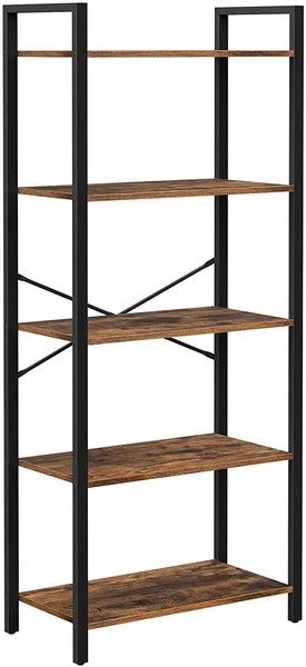 Gulvreol i industrielt design - reol med 5 hylder - rustik brun bogreol - stuereol 153 x 66 x 30 cm: