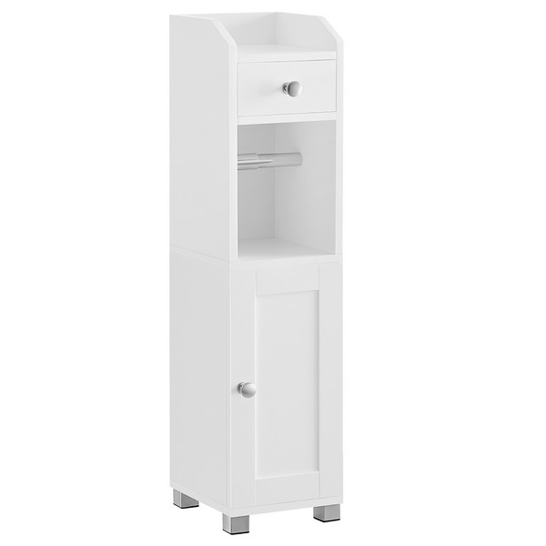 Badeværelsesskab med toiletrulleholder, skab, skabslåge, hylder og skuffe - smalt opbevaringsskab skab til badeværelset - hvidt skab 18 x 20 x 77 cm
