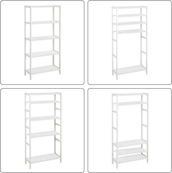 Denne all-around hvide bambus reol er velegnet på badeværelset håndklæder, i stuen til bøger og nipsgenstande, i køkkenet til gryder og pander, i havestuen til planter, i gangen til sko, i kælderen, garagen, eller andre steder.