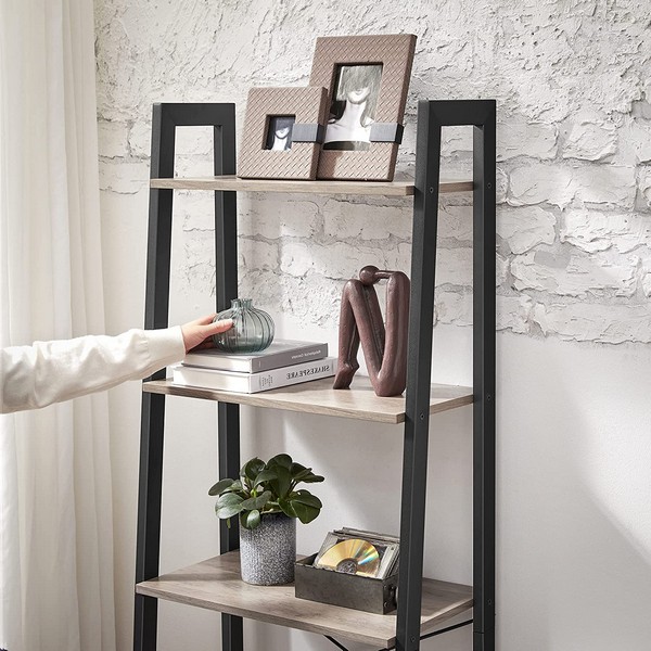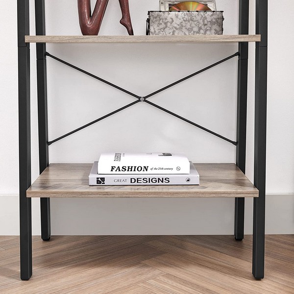 Med en robust stålramme og holdbare konstruerede træhylder kan denne stigereol holde op til 20 kg med op til 5 kg pr. hylde.
