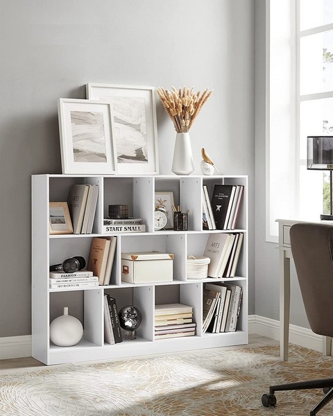 Uanset hvilken stil du har i din boligindretning, om det er landlig stil eller industrielt design, vil denne enkle og moderne fritstående reol med 11 rum, helt sikkert komplementere den, med denne gulvreol.