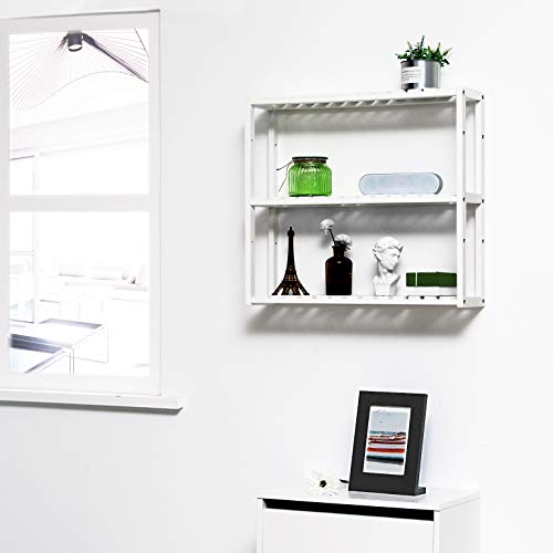 Med denne væghængte opbevaringsreol i hvid bambus får du en 3 lags bambus reol der tilføjer opbevaringsplads til dit værelse.