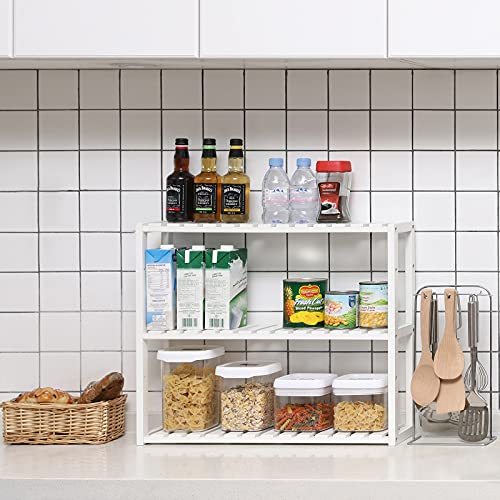 Opbevaringsreolen i hvid bambus med hylder giver dig en masse opbevaringsplads og fleksibilitet, bambus reolen kan både anvendes væghængt på væggen eller stående på gulvet i køkkenet, entreen, badeværelset osv.