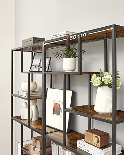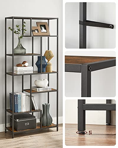 Reol i geometrisk formet industrielt design - bogreol med 6 opbevaringshylder - rustik brun stuereol - gulvreol med 6 hylder - 30 x 80 x 180 cm