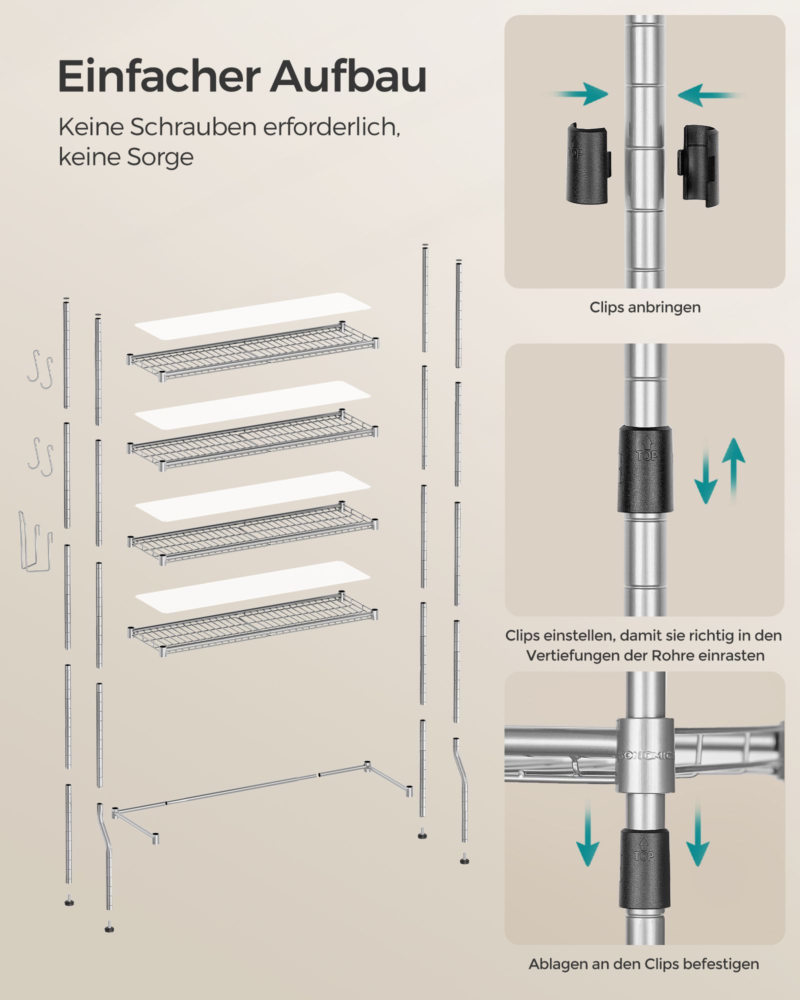 Denne badeværelsesreol i sølv metal er nem og hurtig at samle. Takket være stålreolens enkle struktur og den medfølgende samlevejledning (dansk sprog ikke garanteret), kan du hurtigt og nemt samle stålreolen.