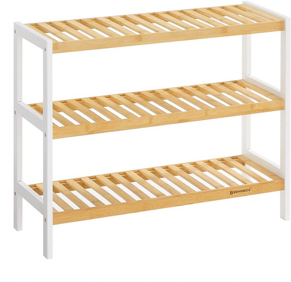 Skoreol i bambus med 3 hylder - hvid og brun skostativ 70 x 55 x 26 cm: