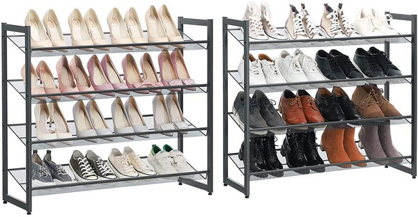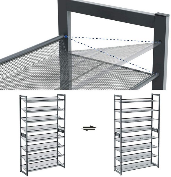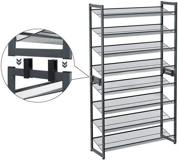 Skoreol med 8 hylder - sæt med 2 x stabelbar skohylder - grå delbar metal skoreol