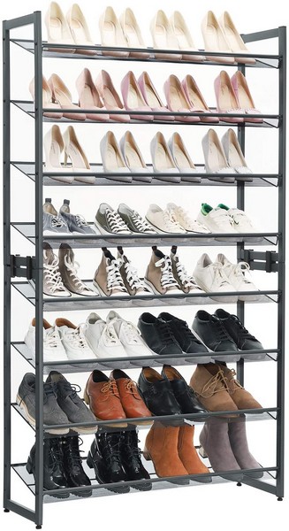 Smart og praktisk delbar grå skoreol i simpelt design med 2 x 4 hylder eller 8 hylder i grå metal. Smart grå skoreol i metal, som er delbar og stabelbar.