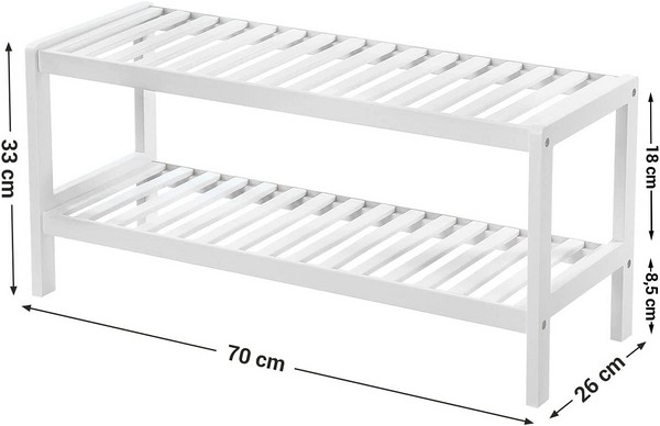 Skoreol i bambus med 2 hylder - hvidt skostativ 70 x 33 x 26 cm:
