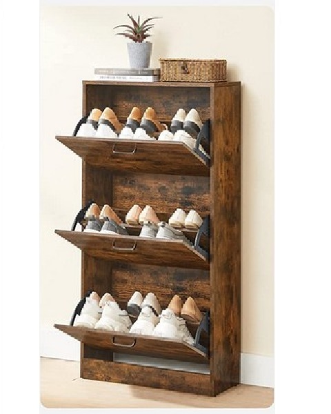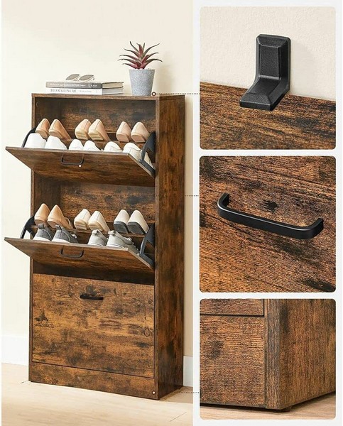 Skoskab med 3 skuffer - skoreol med 3 rum - rustik brun