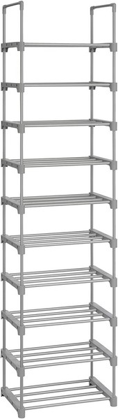 Skoreol med 10 skohylder - delbart skostativ i grå metal med 10 hylder - 45 x 30 x 174