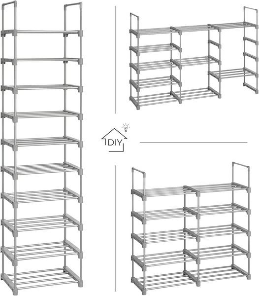 Stable de 10 hylder for at få mest muligt ud af højden, del stativet og brug hylderne sammen eller hver for sig, eller fjern en skohylde for at efterlade pladser til høje støvler - du har rigeligt af valgmulighed for, hvordan du bruger dette delbare skostativ.